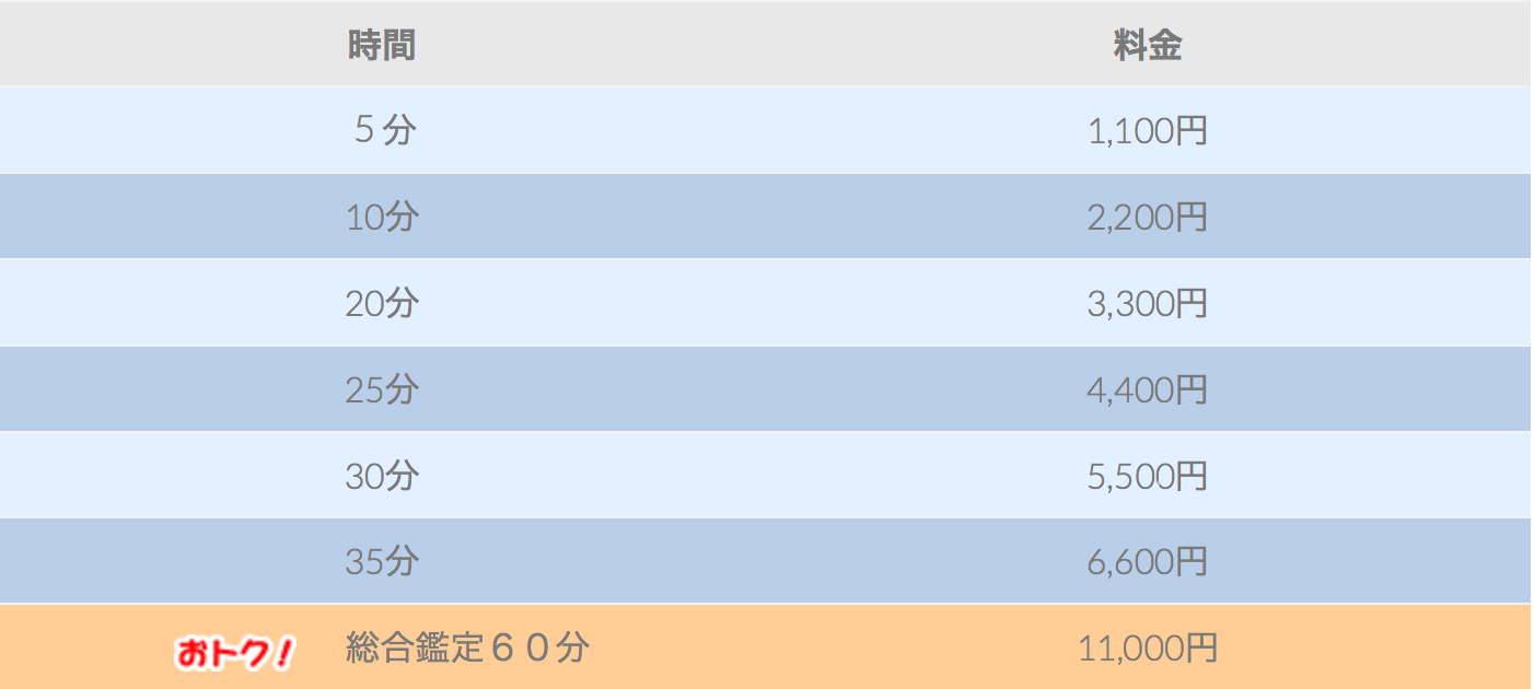 ※相性運(本人&相手)など複数人の鑑定の場合は4,400円〜(税込)とさせていただきます。